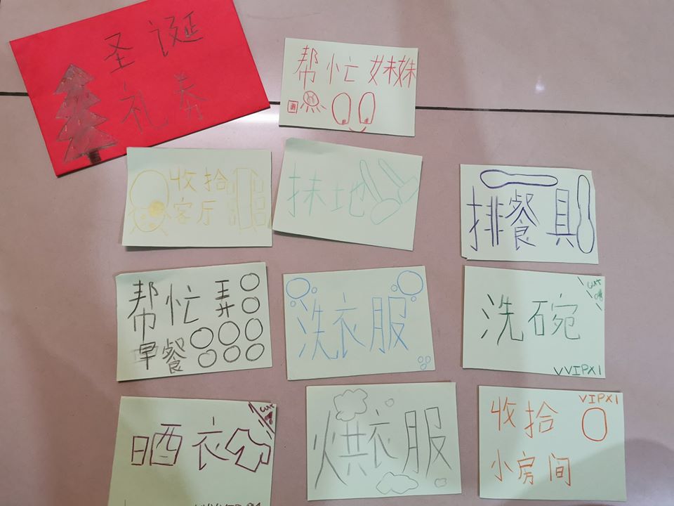 2019年的圣诞节,孩子们送来我这份“特别”的圣诞节礼物–圣诞礼卷。很窝心的礼卷,里面有不同的礼卷,有效期是一年,这是在一年内当我需要时,可以用来“聘请”他们做家务的礼卷。对我来说,这是一份很有心思的礼卷,一年快过去了,我还是保留着每一张礼卷,在妈妈的心中孩子的心思是永远不会过期的 。