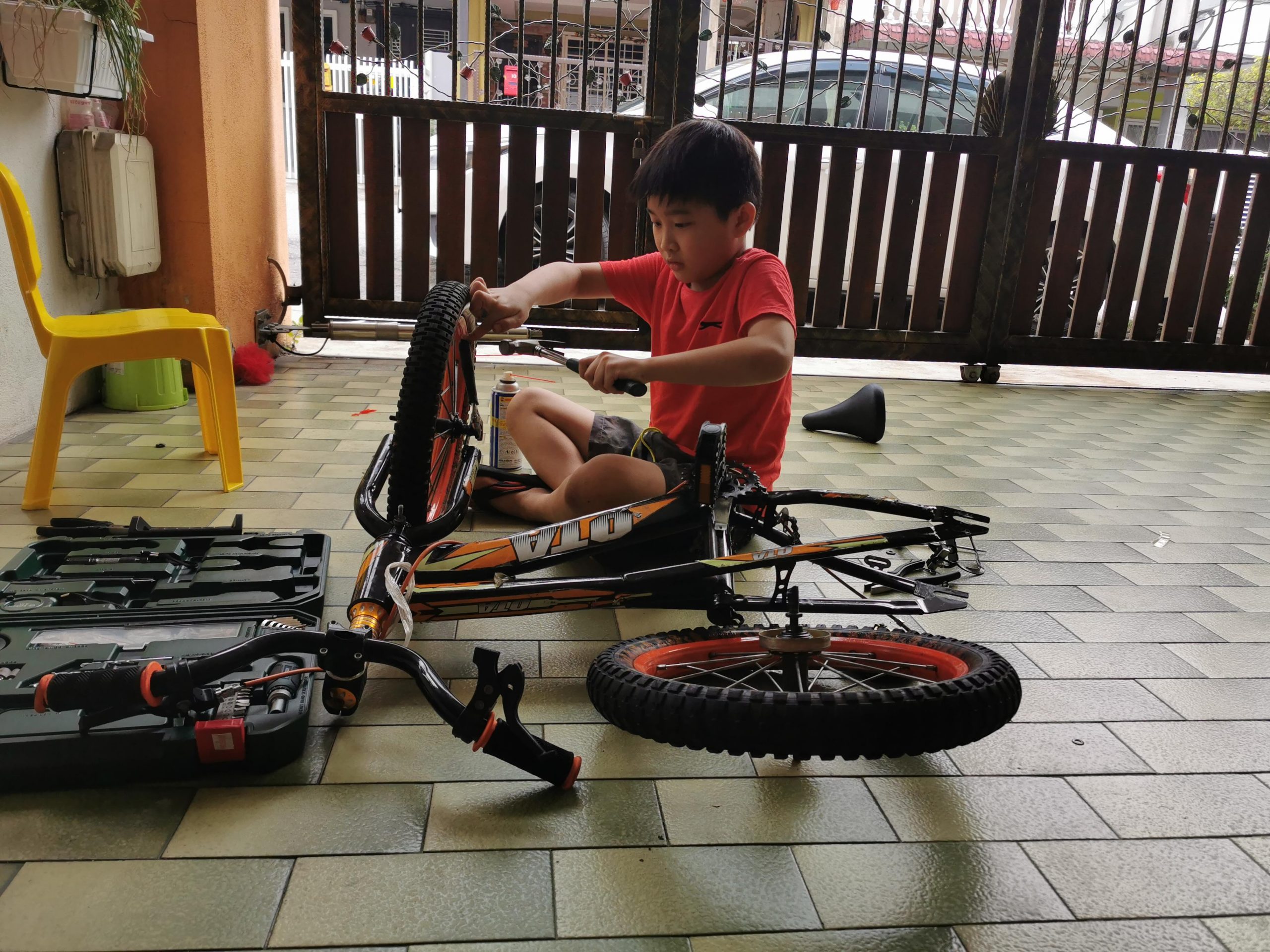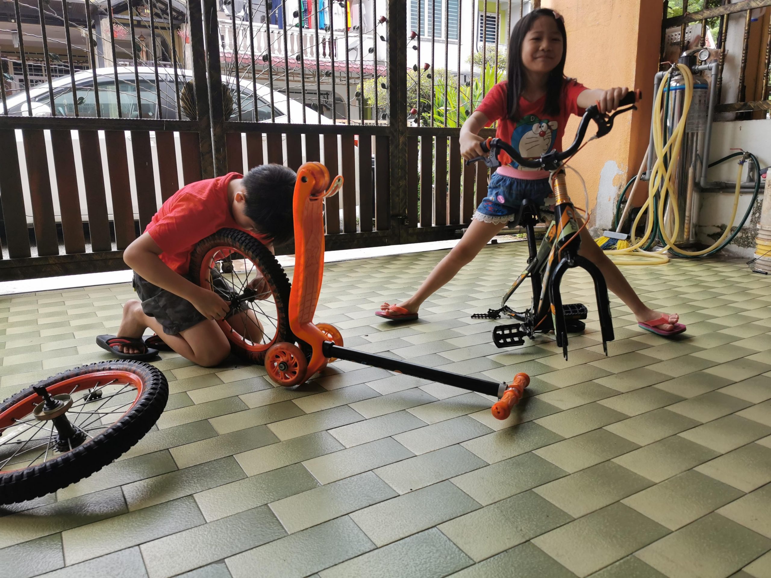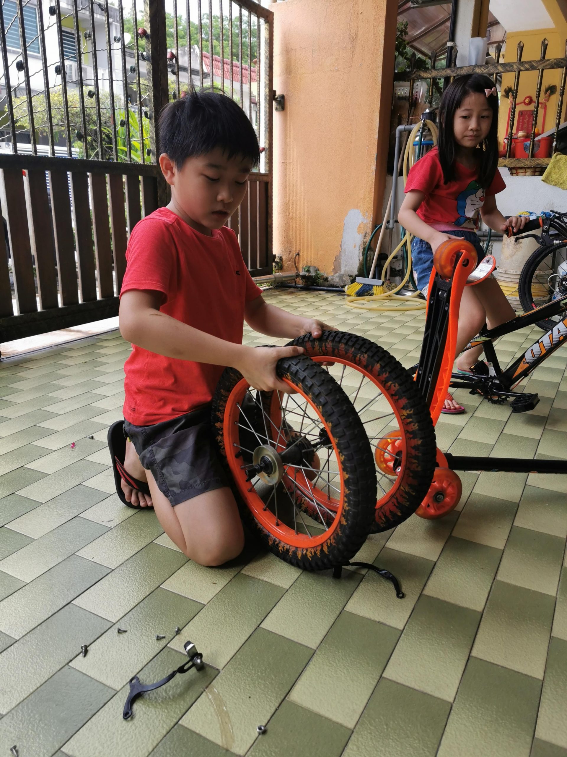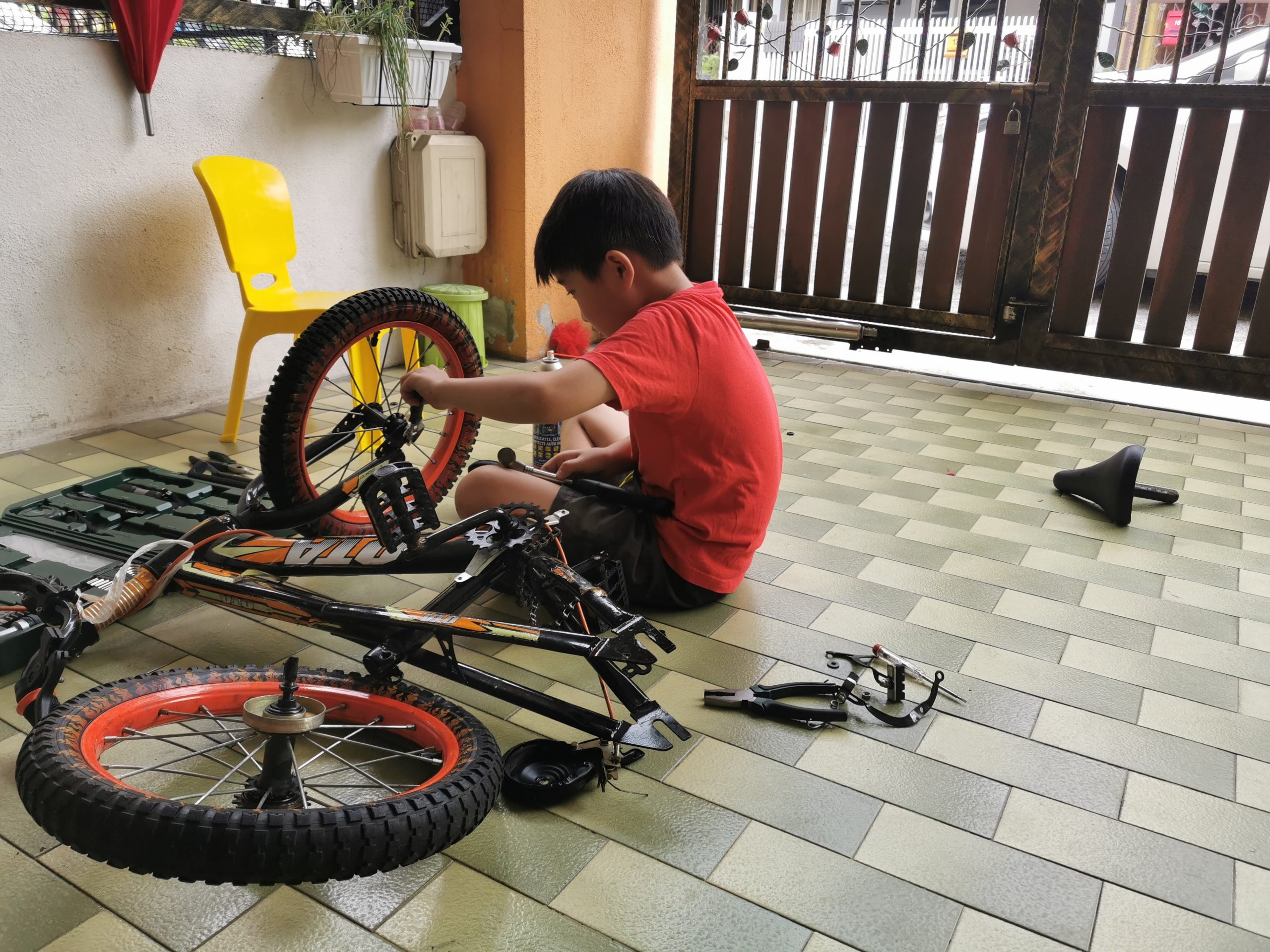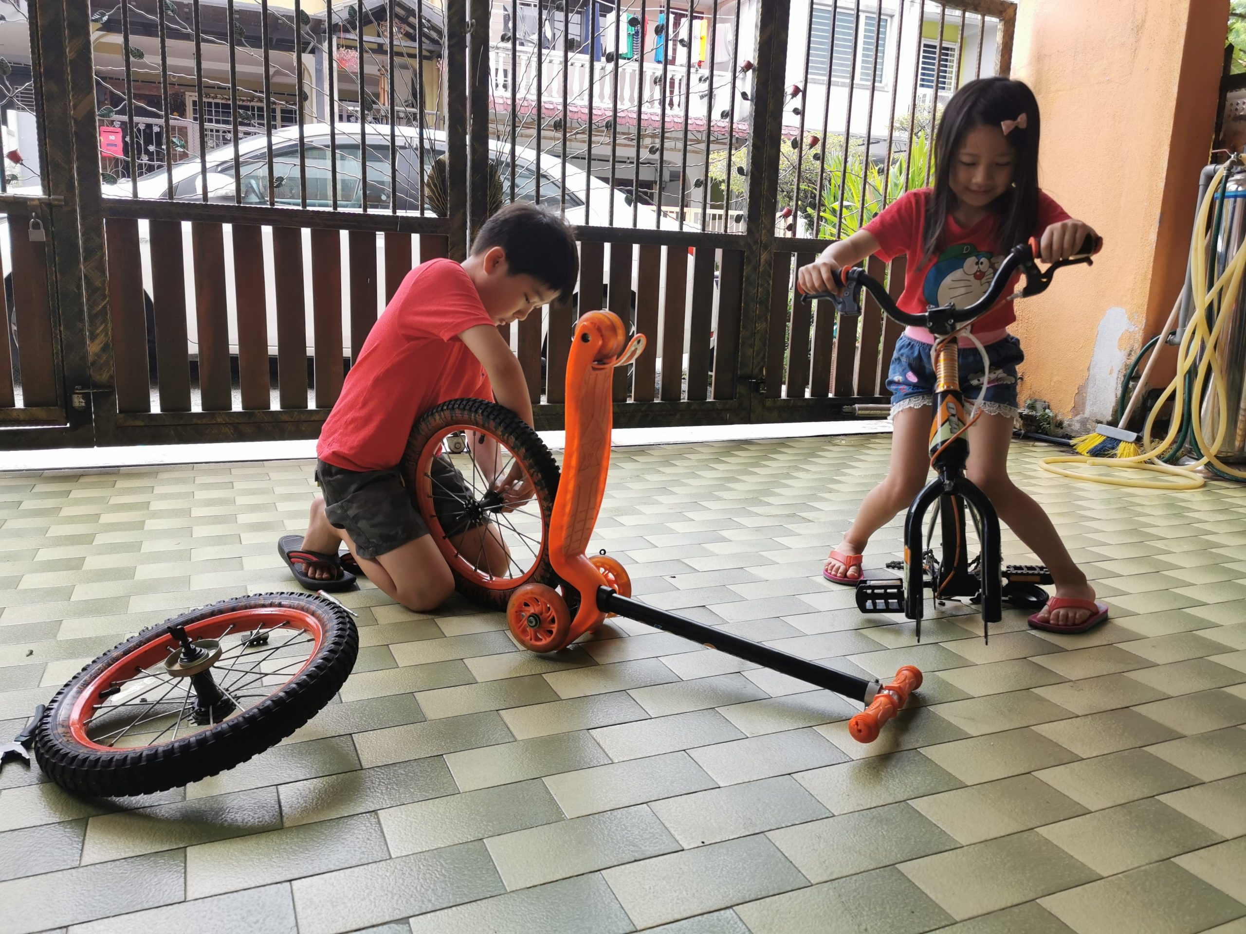 Activities修理脚踏车by dolphinupdated on December 31, 2020October 10, 2020Leave a Comment on 修理脚踏车 Share #妈妈,今天要玩什么?# #Mom, what we want to play today?# Previous Next 今天是公共假期,家里的三辆脚踏车都各有问题,哪不如来学习自己修脚踏车吧!拿起爸爸的工具箱,妈妈示范如何开螺丝,但是孩子修了大半天,流量满身汗,还是搞不懂开螺丝的方向。 一天后。。。。 这已经不是修理脚踏车了。。。这是拆脚踏车了。。。儿子今天的计划是打算拆掉脚踏车上功能还好的零件,安装在姐姐和妹妹的脚踏车。突然还想试试把脚踏车的两个大轮子可否安装在SCOOTER。。。。 这个假期的玩意让孩子:学会了基本的生活技能-开螺丝,上锁螺丝,不同工具的用途。 如何修理自己的脚踏车,例如:脚踏车掉链了的原理是什么?如何修?创意改装自己的脚踏车苦尽甘来的喜悦感-骑着自己修好的脚踏车,与弟妹构思玩意。妹妹也在这个时候学会了不需要后轮扶持的脚踏车。